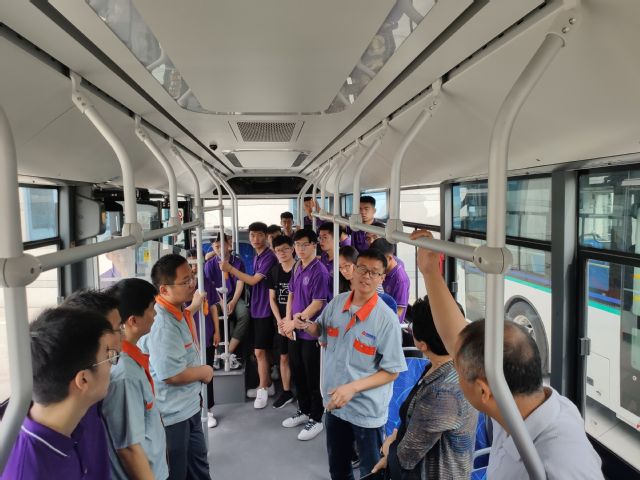 首先,接待领导带全体成员参观中通客车发展馆,了解公司的发展历程、具体车型、公司荣誉等公司的一些基本概况,使得团队成员对中通客车的发展现状又有了更进一步的认识。技术人员重点讲解了燃料电池、磷酸铁锂电池等相关新能源车型,团队成员与讲解员密切交流沟通,充分了解该公司在行业领域中所具备的发展优势及人才储备,讲解员提到公司的发展理念是朝着新动能、零污染、零排放的方向发展。随后,团队成员参观了公司展出的新能源客车、房车、校车等,并与讲解人员深入讨论了该公司对人才方面的要求现状及公司待遇等问题。