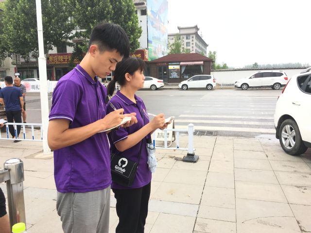 烈日当空,团队成员站在停车场出入口处,没有热闹的场面,没有清爽的环境,队员们耐得住寂寞,如一个屹立在这里的标杆,每一辆车进来,每一辆车离开,都化成记录本上的一横一竖。