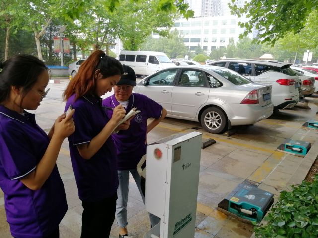 B组成员到达后,发现该充电桩位于一座小区住宅内,在得到该地管理人员许可后,B组成员进入小区,对汽车充电站(齐林家园)充电桩的数量、性能参数、收费标准、使用率进行了统计,并且向相关工作人员收集了日营业额、使用率、故障率等数据,且做好了数据备份。紧接着,B组全体成员在汽车充电站(齐林家园)充电桩前进行合影留念。随后,队员们全体安全返回学校。当日晚,该团队全体成员于山东理工大学3号教学楼1楼进行了数据的汇总以及整理对比,并且完成了7月21日的工作分配和路线规划。