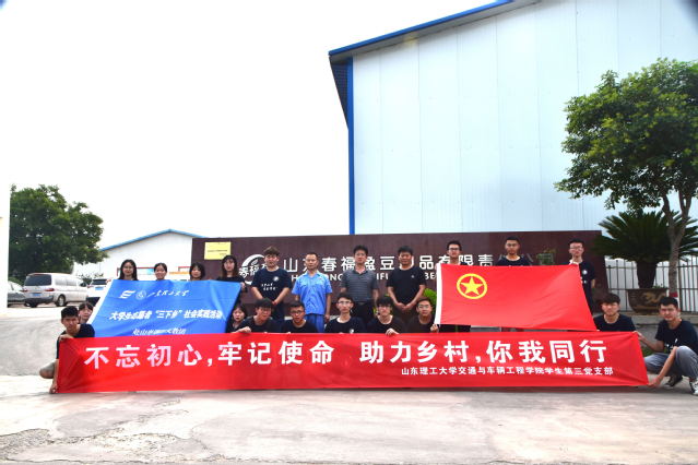 7月21日上午,山东理工大学交通与车辆工程学院“筑梦山亭,青春有我”实践团一行18人在实践团队队长于士涵的带领下,赴山东春福盈豆制品有限责任公司进行调研。