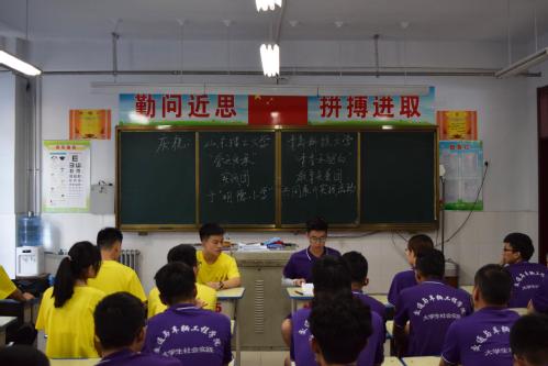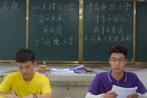 为全面贯彻与落实素质教育,在开齐、开全、开好基本文化课程的基础上,本着张扬学生个性、培养学生兴趣和特长的原则,以课程多元化满足学生需求,为学生个性化与终身发展奠基。7月22日下午,山东理工大学“爱之传承”实践团与青岛科技大学“青春不留白”教育关爱团全体成员齐聚明德小学三年级教室,双方本着互相帮助、互利合作的原则,共同商讨接下来的工作计划。在接下来的八天内,两校实践团将合作完成支教、运动会、团体心理辅导等活动。