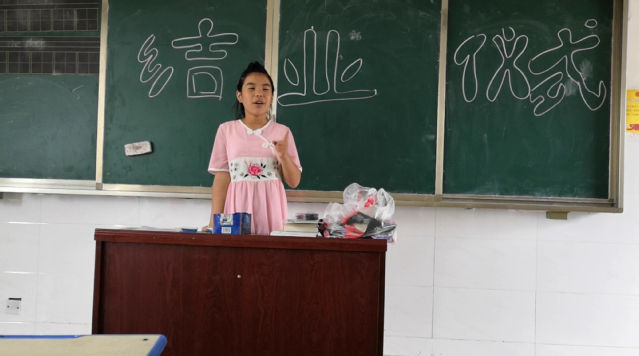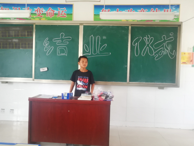 这一天,志愿者在六年级的教室里举办了结业仪式,六年级的学生们和志愿者一起参加了活动。结业仪式开始时,首先进行了个人分享收获环节,学生们积极走上讲台大声的说出一个月以来的收获。