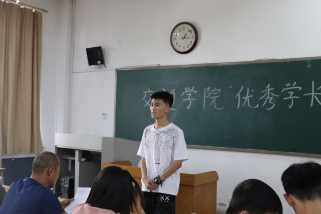为了帮助新生更好地适应大学,解决他们在学习与生活过程中存在的疑难困惑,同时充分发挥高年级优秀学生的“传、帮、带”作用,实现学生“自我教育,自我管理,自我服务”的教育目标。8月29日下午,我院在12号教学楼举办“优秀学长”选拔赛。本次选拔由新生辅导员崔鹏、张杨以及各专业“优秀带班学长”代表胡家玮、贾硕、杨梓艺、周彬担任评委。
