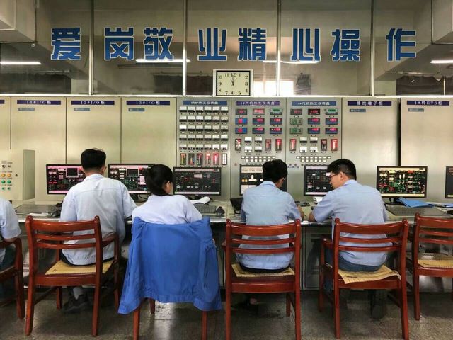 进入车间后人手一本操作规程,一套相关的图纸,并可以随时向控制室里的相关工作人员请教。班长等人还会热心主动的帮同学们学习图纸内容,并亲自执笔画图教授大家不懂的地方。课堂上学到的,和现实总是有些差距,不乏深奥难懂的地方,但好在多学多问,经过工作人员的指点迷津,就可以收获另一片柳暗花明。工程图纸上的管路交叉复杂有重叠等抽象的地方,还会派遣相关负责人带领大家去现场实地观察。盛和热电厂是母管制蒸汽系统,共有8台锅炉,配套的汽机也有8台,了解了一定的操作规程后,每班巡检人员,会带着大家去生产一线学习,先是带着大家爬了40多米高的锅炉,每一阶各个管道部件,它们的名称、作用、工作原理、维修步骤、锅炉启停需要如何操作等都讲的很细致;同样地,值长也会带我们去看汽机运转,进行相关讲解,如若有某一号机组停机检修,图纸上看不懂的复杂部分打开盖子就一目了然了。锅炉和汽机学习结束后,由负责电气方面的值长带领我们参观整套电力设备,我们了解了汽机发出来的电是怎么经过分电器转化给厂里供电,又是怎样加压后上国家电网,整个流程看似复杂难懂,但稍有所得便觉获益良多,点滴积累后方知它层层嵌套后相互联系起来是怎样一个精密神奇的过程。