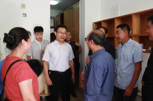 8月31日上午,伴随着夏末的阳光,各地新生陆续到达学校,报道工作结束后,陆续入住宿舍。在学院学生会工作人员的带领下,到达了相应的宿舍楼。宿舍楼下的学院志愿者热情地接过新生行李,并引导学生以及家长到达相应宿舍,落实新生的安顿工作。随着迎新工作的进行,党总支书记褚兆勇,院长高松,党总支副书记王建兴,辅导员崔鹏在各部负责人的陪同下走访新生宿舍。亲切慰问2019级新生并送去关心和祝愿。