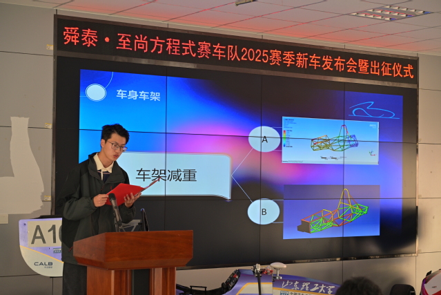崔焕勇在致辞中向为新车研发倾注心血的师生致以诚挚问候,并对支持车队建设的学院、部门及舜泰汽车有限公司表示衷心感谢。他充分肯定了车队在成立十周年之际实现“一年双车”参赛并双双国赛获奖的卓越表现,赞扬了同学们在新赛季研发中展现出的专注热爱、精益求精和敢闯敢试的团队精神。面对即将到来的大赛,他寄语队员们要发扬工匠精神周密调试备战,坚守安全底线确保平安归来,并以自信从容、团结协作的姿态赛出“至尚”风采,为新时代“交通强国”“汽车强国”战略贡献青春力量。