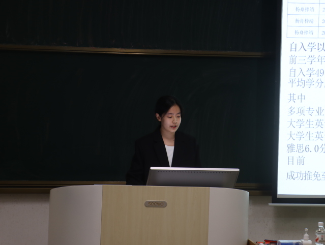 答辩环节中,刘展、杨舟梓靖两位同学围绕学业成绩、科研竞赛、社会实践及志愿服务等方面进行陈述展示。答辩结束后,以无记名投票形式对两位同学进行评议并现场进行唱票统计。最终,刘展以较高票数获胜。