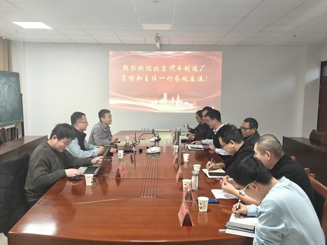 座谈会后,肖明知一行前往车辆工程系,与系内教师代表展开进一步交流。肖主任介绍了北京汽车制造厂的发展历程与企业现状,重点阐述了检测中心的建设与运行情况;车辆工程系教师也分享了相关科研方向的最新进展。双方一致认为,通过加强校企互动、共建实践平台,能够有力促进技术研发与产业应用的有效衔接,实现人才培养与行业需求的紧密结合。交流结束后,肖明知一行参观了学院重点实验室,包括新能源汽车动力系统测试平台、智能网联汽车仿真中心以及车辆轻量化材料实验室等。