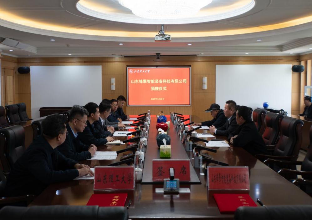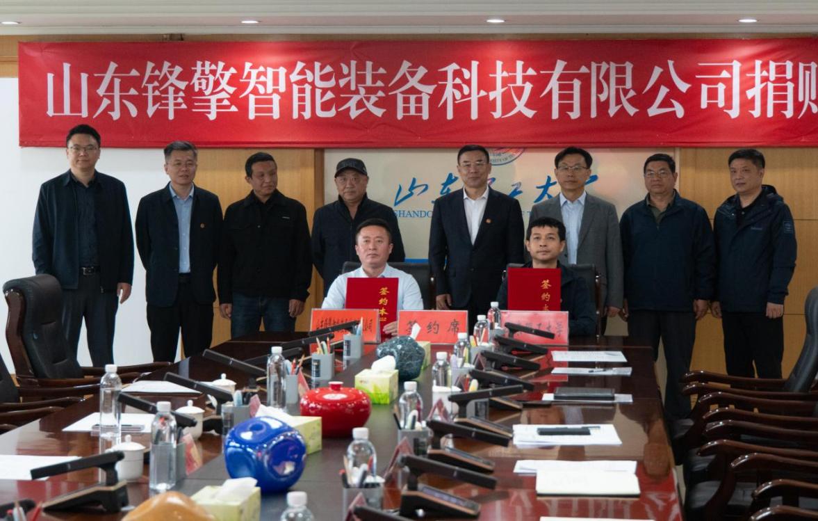 4月23日上午,山东锋擎智能装备科技有限公司捐赠仪式在鸿远楼九楼会议室举行。校党委常委、副校长崔焕勇,山东锋擎智能装备科技有限公司董事长齐庆财、总经理朱连亮、技术总监桓向洪出席,合作发展处副处长尹磊昌、后勤管理处副处长高名亮、学院党委副书记、纪委书记宋立平,副院长孙锋,学院教师、山东锋擎智能装备科技有限公司科技副总付宏勋参加。会议由学院党委书记褚兆勇主持。