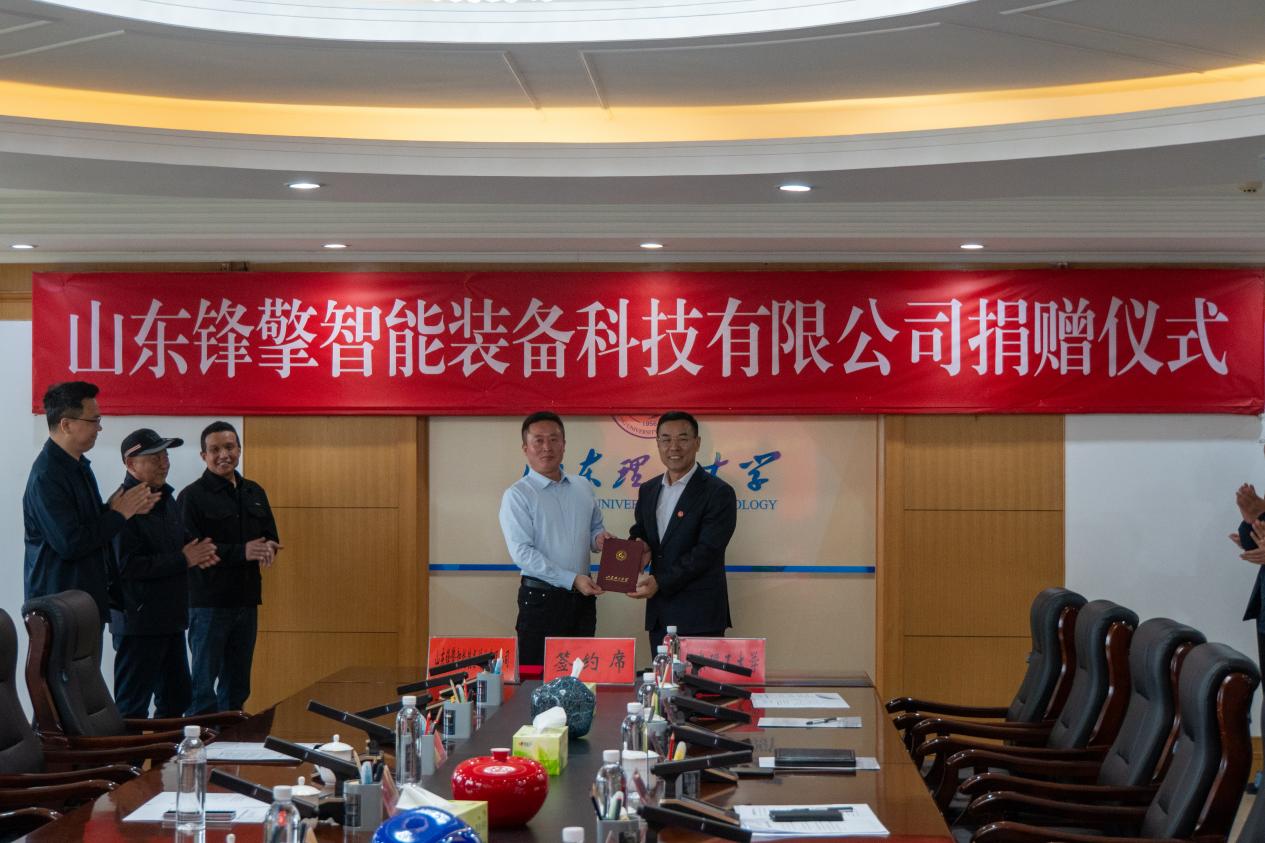 崔焕勇向山东锋擎智能装备科技有限公司的慷慨捐赠和一直以来对学校事业发展的关心与支持致以衷心感谢。他表示,锋擎智能公司作为淄博本地企业,深耕道路养护领域,在人才培养、技术研发等方面与学校开展了广泛合作。此次捐赠10年扫雪除冰保障服务,彰显了企业的社会责任感和对教育事业的深切关怀。希望双方进一步深化合作,在更多领域、更深层次实现互利共赢,共同为推动地方经济社会发展和强国建设贡献力量。